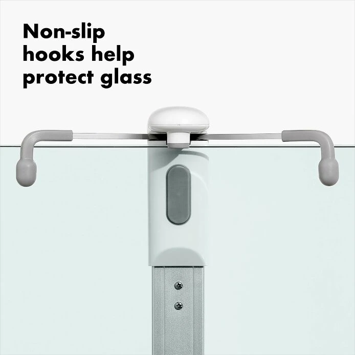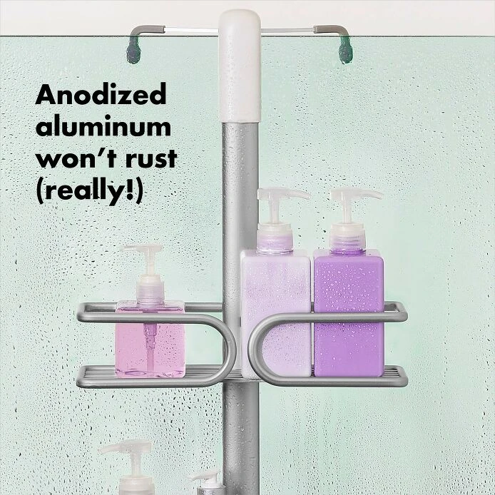 Maximize storage in shower stalls with the OXO Good Grips Aluminum Caddy for Shower Doors. The rustproof (really!) anodized aluminum frame and large-capacity baskets provide structure and keep even deluxe-sized bottles contained. Our Caddy ensures all your shower essentials are close at hand with a generous soap dish, built-in razor holder and a hook for loofahs and washcloths. The tool-free installation is simple: Place the Caddy over your shower door or wall, and the hooks will automatically slide to fit and lock in place. The hooks are non-slip, so they won’t scratch glass surfaces, and rotating suction cups provide added stability.