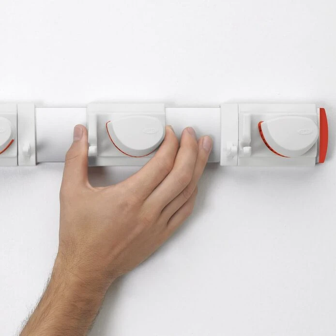 Keep your brooms, umbrellas and other long-handled items upright and out of the way. 4 non-slip CamLockâ„¢ holders automatically adjust to any pole 1/2″ to 1/4″ in diameter. Simply push in to store and lift to release. Also includes 8 additional storage hooks, built-in level, and mounting hardware.