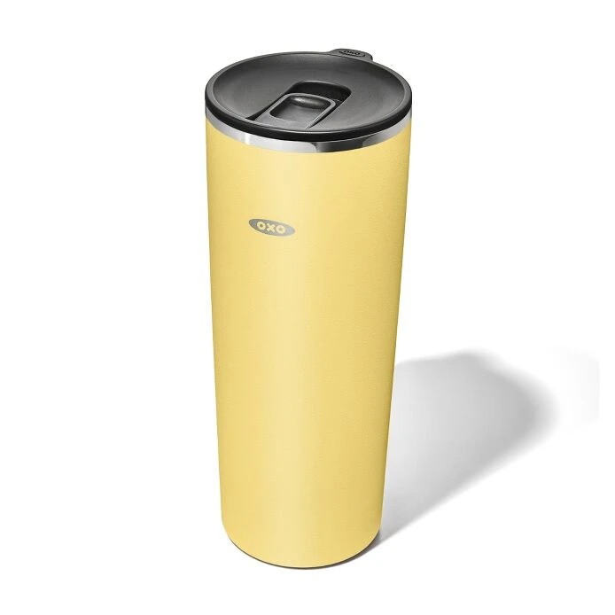 OXO Strive Insulated Tumbler with Easy-Close Lid (24 oz/710 mL) keeps drinks hot (or cold!) all day long. The Insulated Tumbler is sized to fit most car cup holders and features an easy-close design to help minimize messes. The wide lid opening is big enough for sipping or for reusable straws. The Insulated Tumbler’s double-wall vacuum insulation keeps your cold drinks cold for 12 hours, and your hot drinks hot for 6 hours. Dishwasher safe, stainless steel, BPA free. By choosing to reuse, you’re doing better for the planet. For over 30 years, we’ve designed products that make every day better at home. By committing 1% of our annual sales to support environmental nonprofits, we’re pledging to make every day better for the planet.Features Lid opening is sized for sipping or for straws Easy-close design helps minimize messes Double-wall vacuum insulated Sized to fit in most car cup holders Keeps drinks hot for 6 hours, cold for 12 hours Holds 24 oz/710 mL