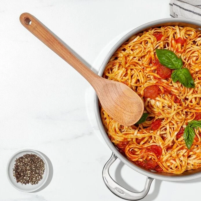 Our wooden utensils are made of solid, one-piece beech wood, and designed for comfort and utility. Their distinctive straight-sided shape allows better reach along walls and in corners of cookware. A natural oil finish coats and protects the wood. Safe for non-stick cookware. Hand wash only.